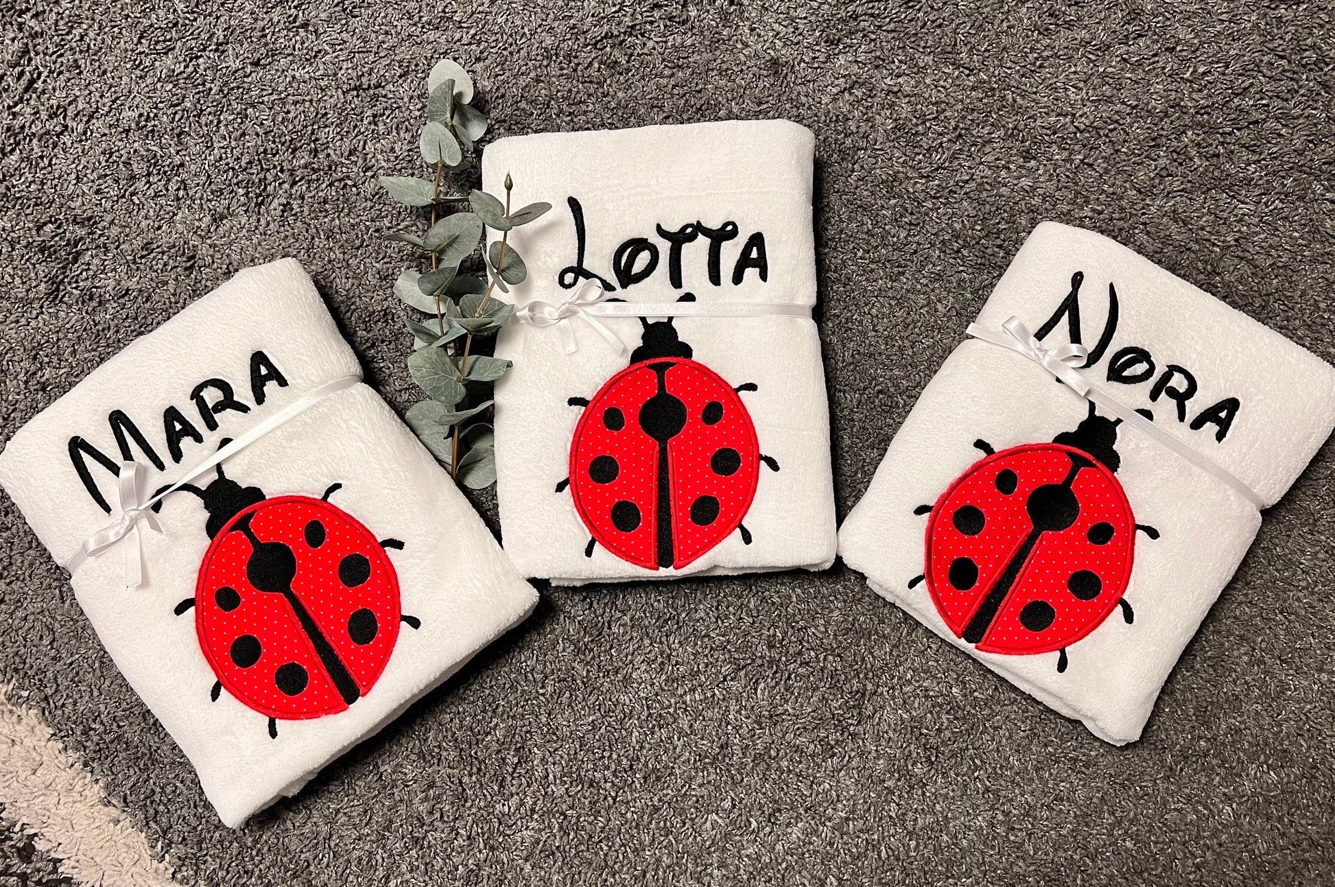 Babydecke Marienkäfer Malina personalisierbar mit Namen, Datum, Gewicht, Uhrzeit und Größe